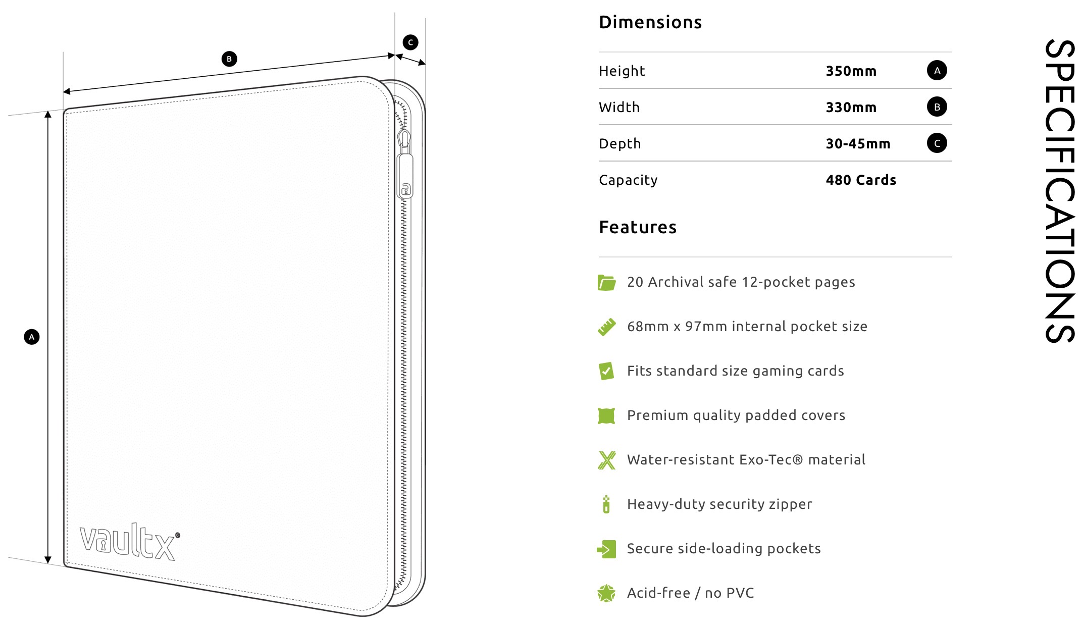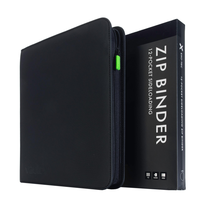 Binder de calitate premium cu 12 buzunare si fermoar pentru carti / cartonase TCG, are 20 de pagini si poti introduce 480 de carti. Copertile acestui binder sunt extra rigide, avand materiale ''aderente'' astfel binderul nu iti aluneca din maini, fiind de asemenea rezistente impotriva apei (desii eu nu recomand sa iti uzi binderul, nici macar de test :D).
